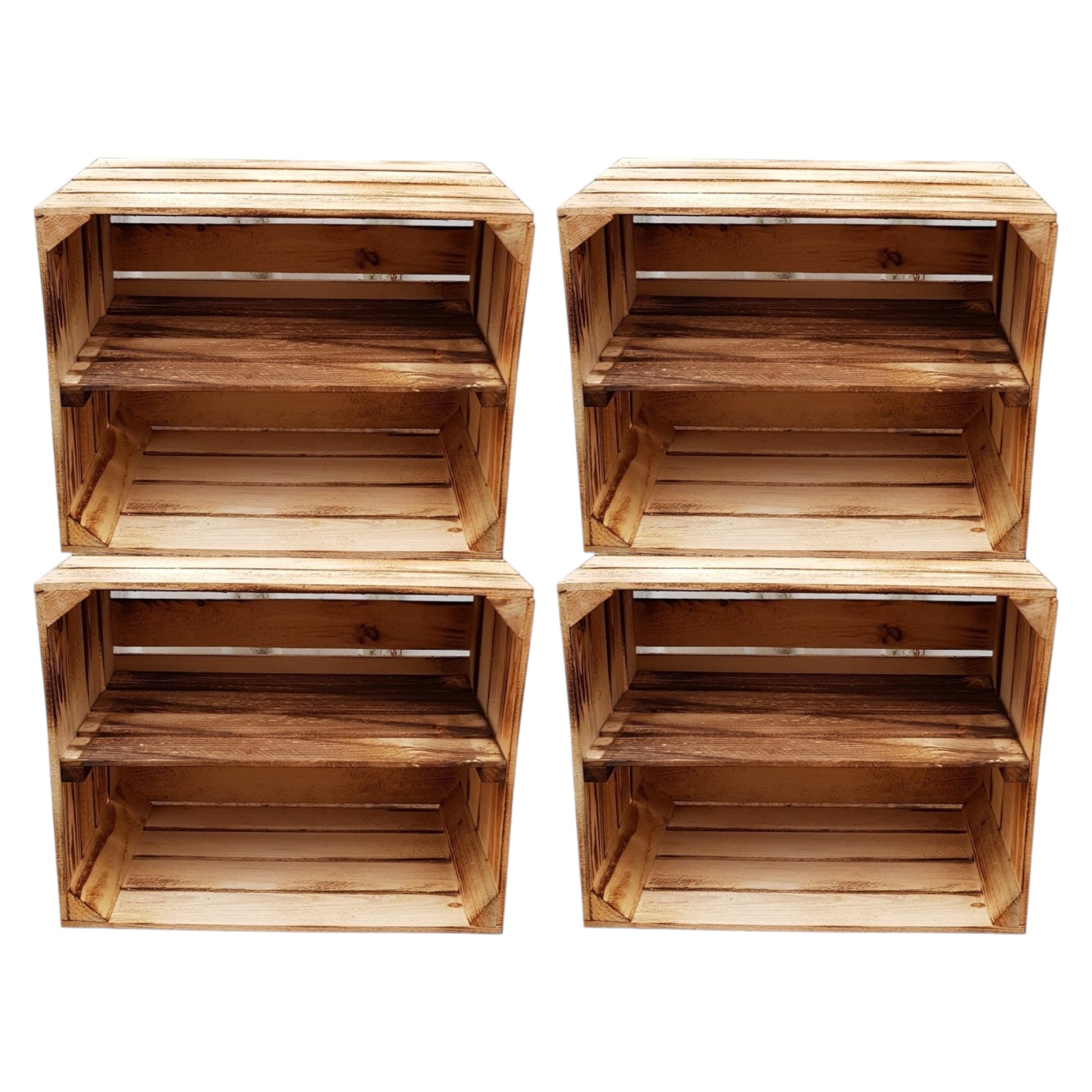 Holzkisten Regal 4er Set 50 x 40 x 30cm Geflammt Ablage Lang