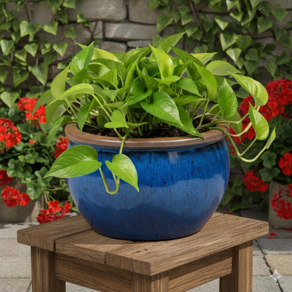 Keramik Pflanzschale "Bavaria" Royal Blau mit Rand – Wählbare Größen