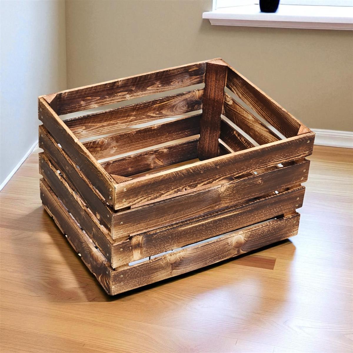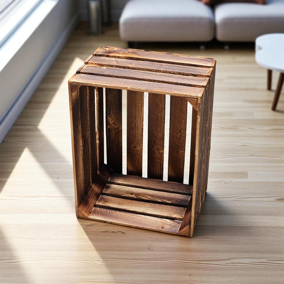 Caisse à fruits vintage flammée 50 x 40 x 30 cm