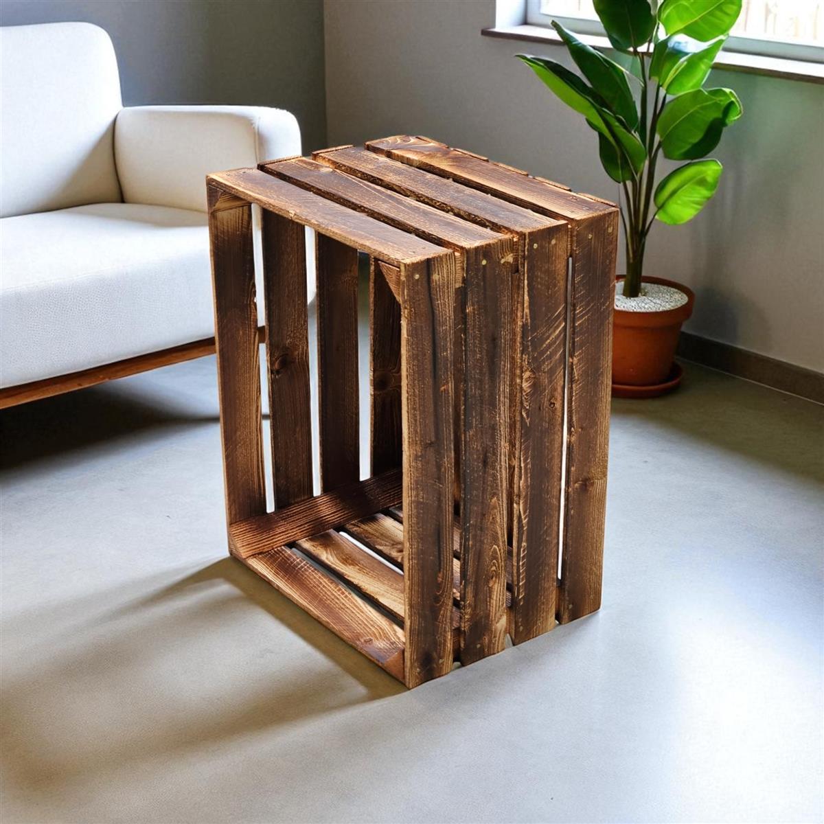 • Notre boîte en bois robuste (50x40x30cm) est un meuble unique pour votre maison. Avec sa surface flammée et son charme rustique, il confère à n'importe quelle pièce une atmosphère chaleureuse.