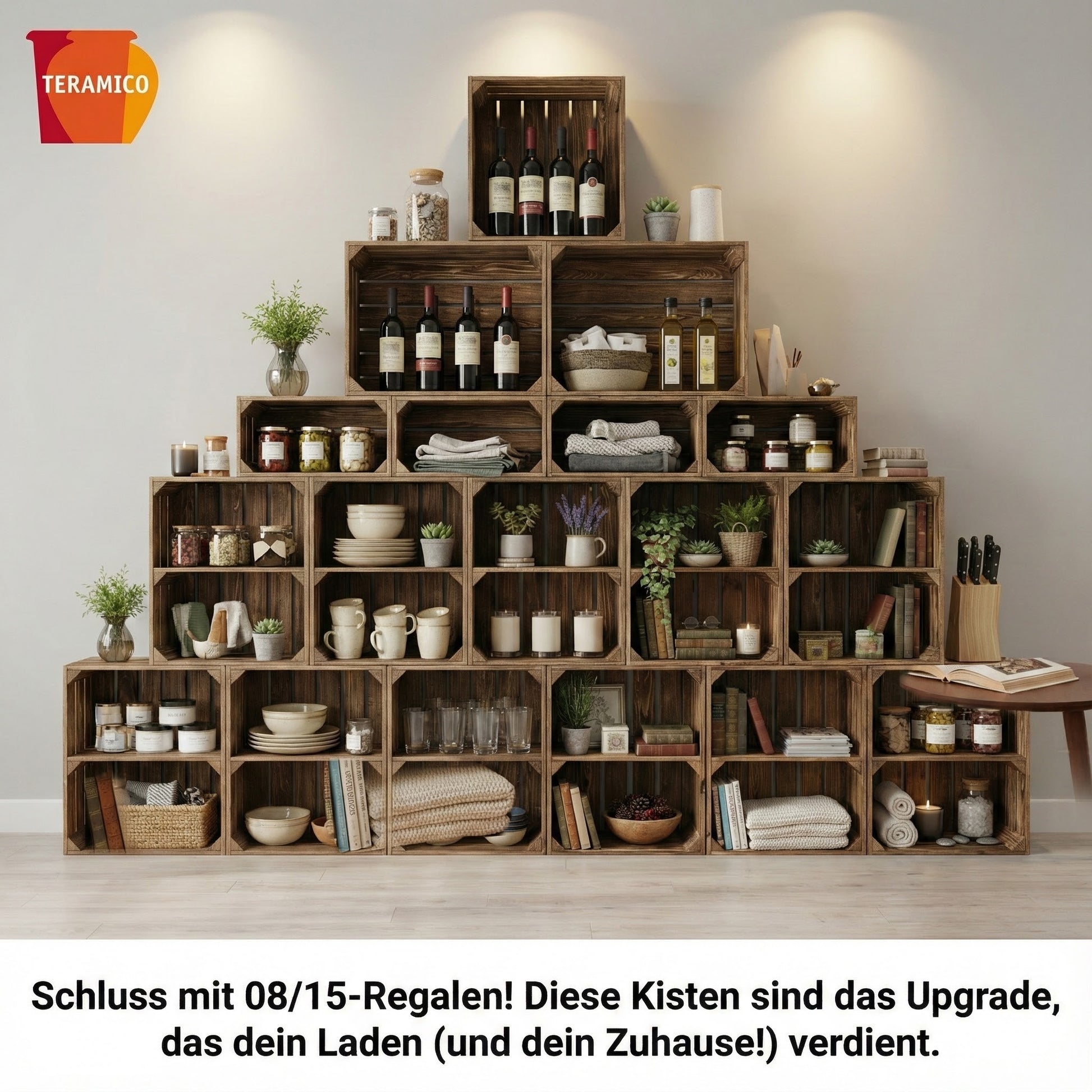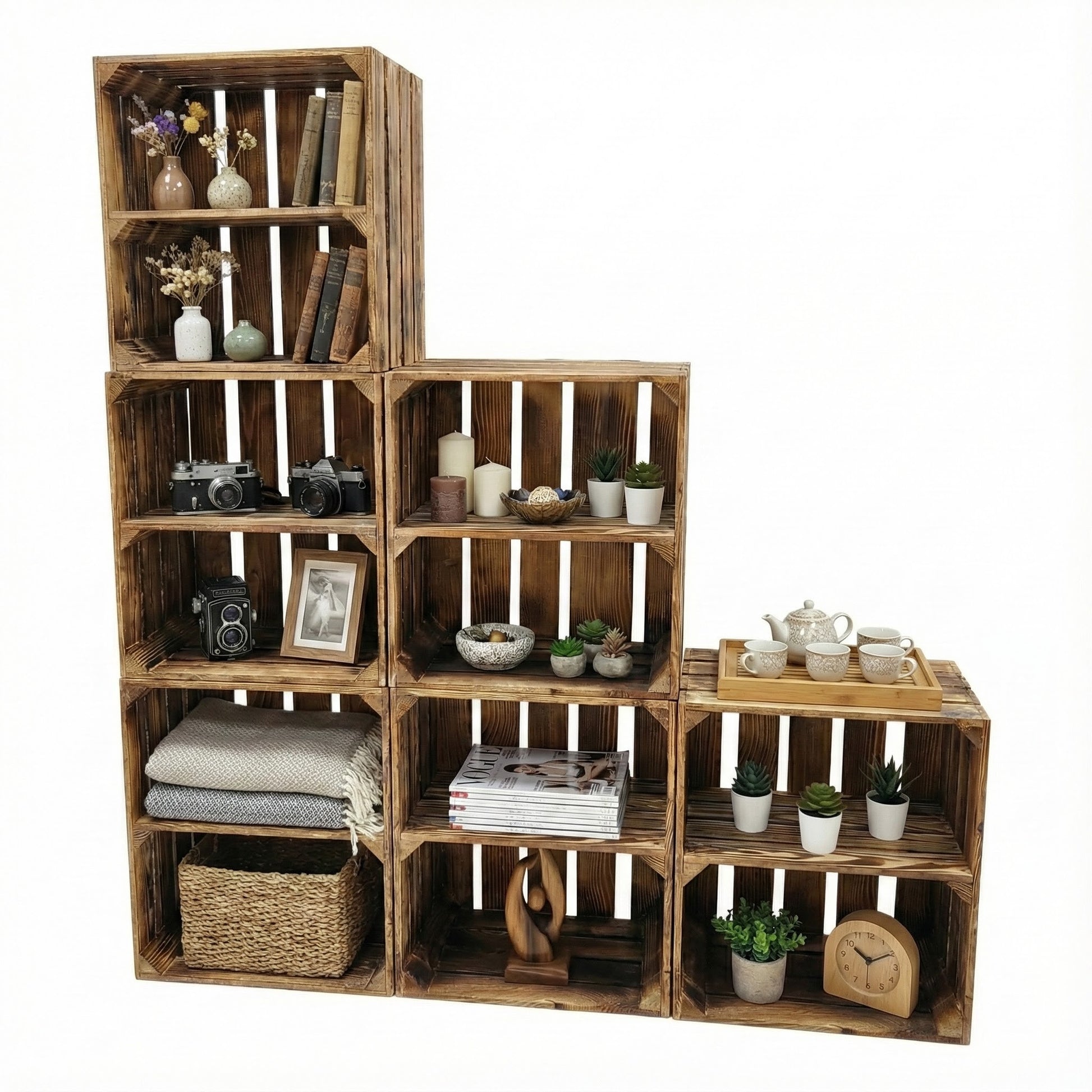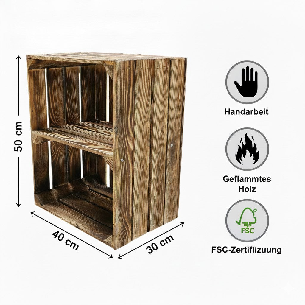Teramico 6er Set Holzkisten mit Zwischenboden – Geflammt & Neu (50x40x30cm)