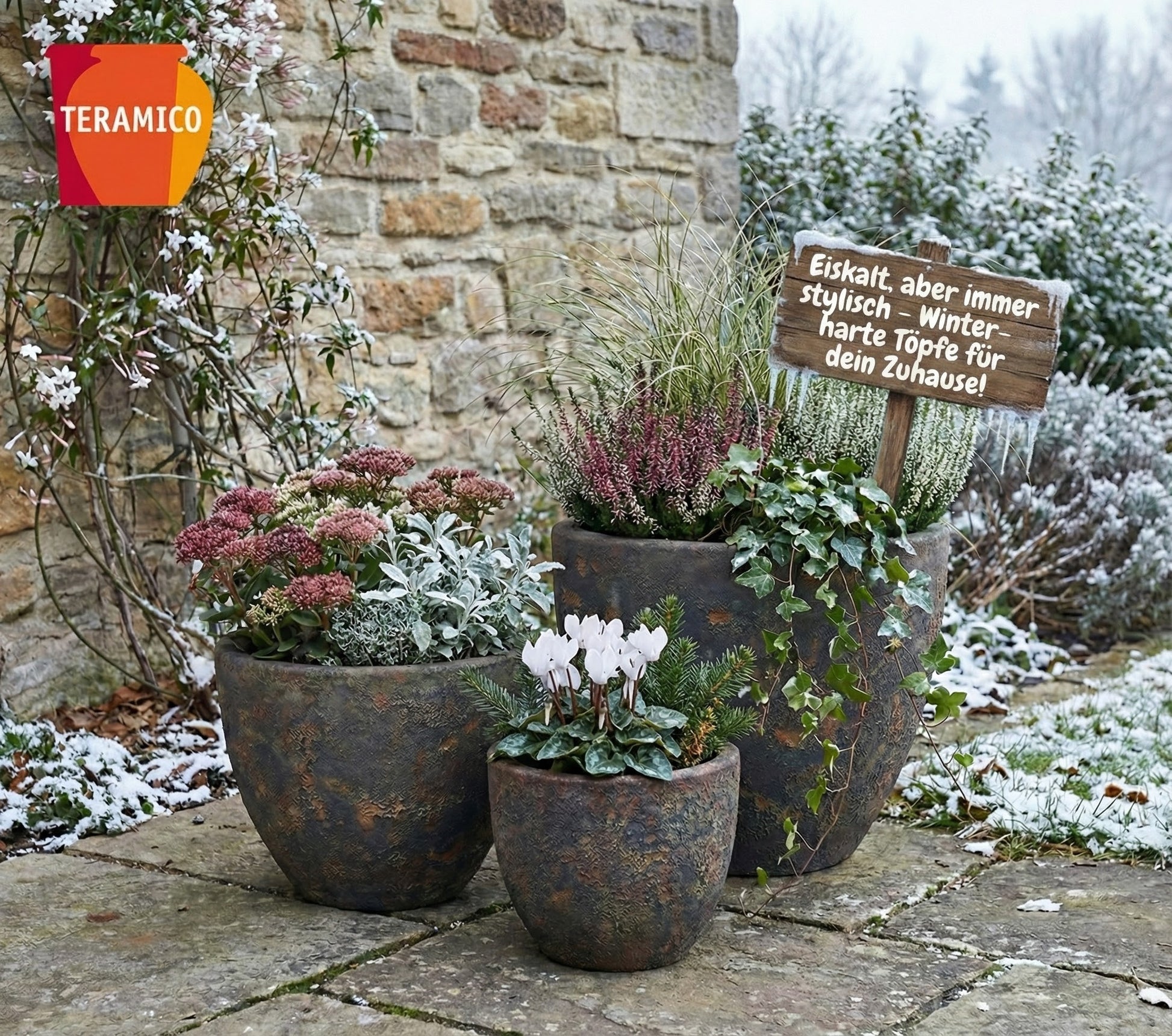 100% JA! Steinzeug ist einfach nicht kaputt zu bekommen und auch unser Terrakotta aus Italien ist so hoch gebrannt und von so guter Qualität, dass alle Gefäße absolut Winterhart also Frostfest sind. Natürlich muss dafür Regen-und Gießwasser abfließen können, daher bitte auf die richtige Bepflanzung achten und gerne auch mal einen Fuß unter das Gefäß stellen ;-)