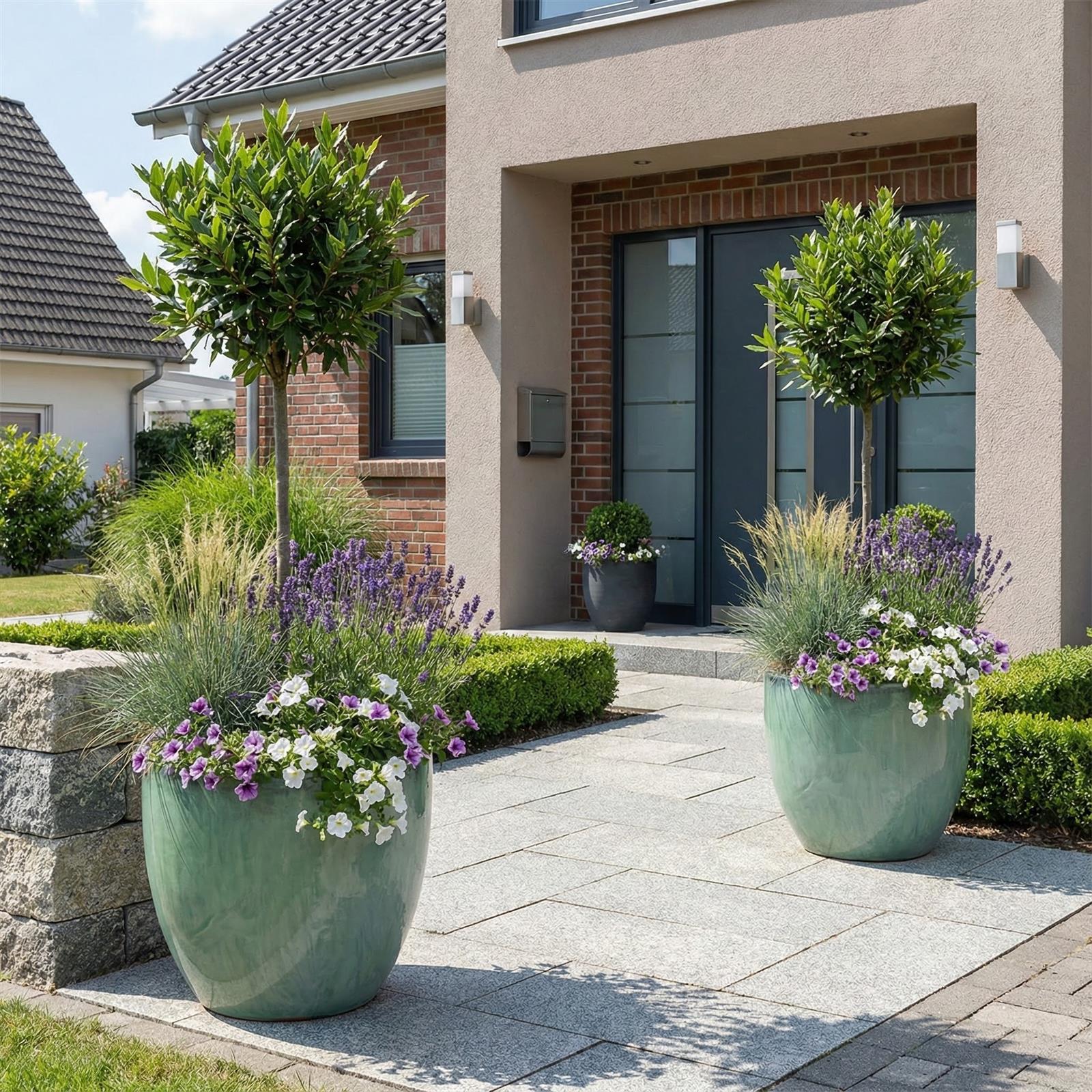 Perfekt für Solitärpflanzen auf der Terrasse oder im Eingangsbereich. Hier fühlen sich kleine Buchsbäume oder Hortensien wohl.