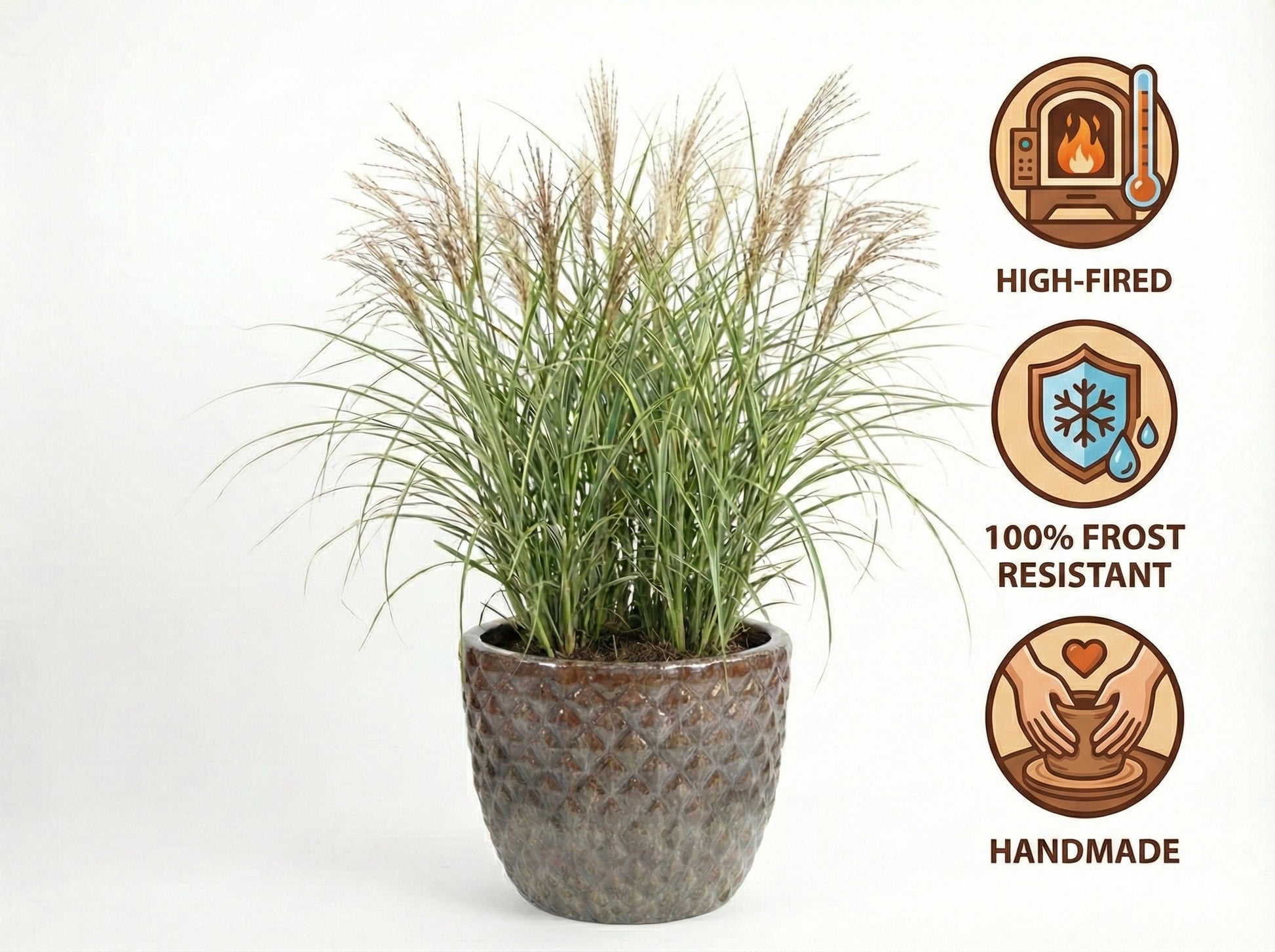 Die Farbe Braun ist zeitlos und lässt sich perfekt kombinieren. Anders als glatte Töpfe wirkt die Bubble-Struktur auch bei dieser Größe nie langweilig, sondern lebendig und hochwertig.