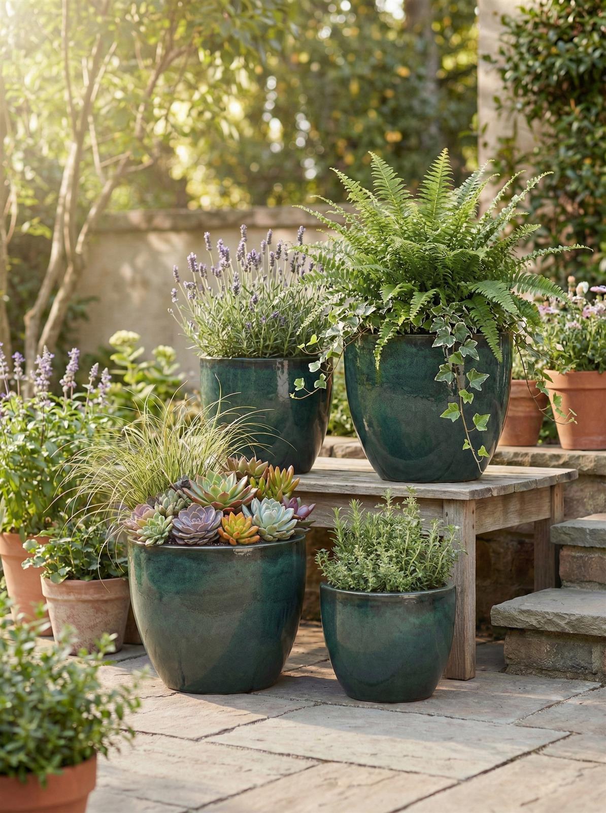• Natürliche Harmonie: Grün auf Grün – dieser Topf wirkt nie wie ein Fremdkörper, sondern wie ein gewachsener Teil des Gartens.