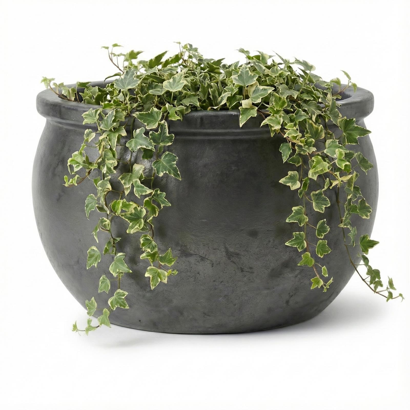 Modern, zeitlos und extrem robust: Diese massive Pflanzschale in dunklem Anthrazit ist der perfekte Kontrastgeber für Ihre Pflanzen. Die tiefgraue, fast schwarze Glasur lässt das frische Grün von Buchsbaum oder die leuchtenden Farben von Sommerblumen besonders intensiv strahlen.