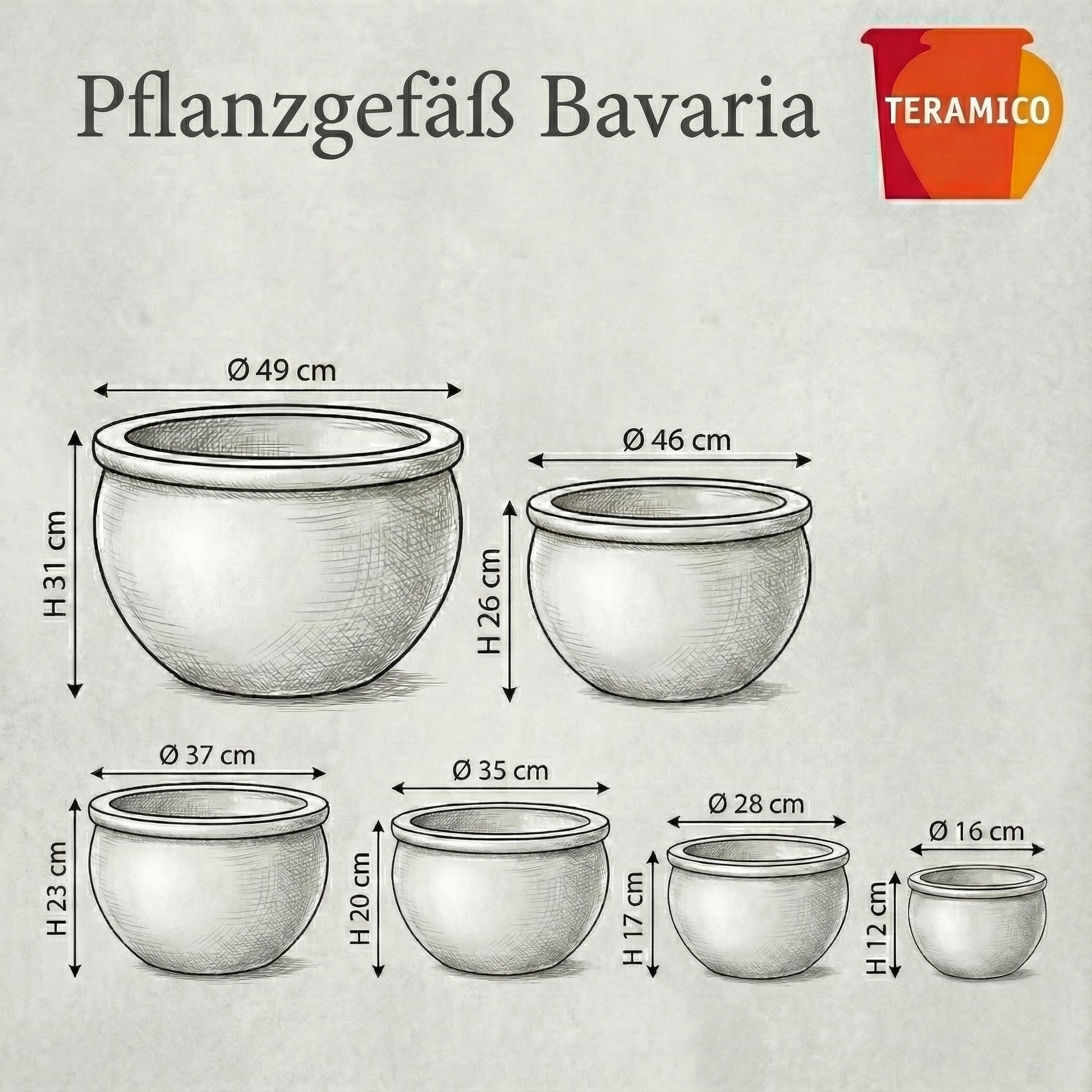 • Massive Standfestigkeit: Durch die bauchige Form mit tiefem Schwerpunkt und das hohe Eigengewicht kippen diese Gefäße auch bei starkem Wind nicht um.